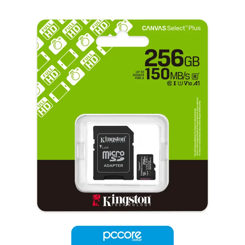 Memoria Micro SD 256GB Kingston Canvas Select Plus SDXC Gen3 V10 A1 150MB/s